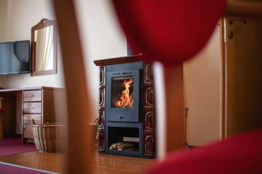 Jednopodlažné apartmány LUX s 2 spálňami a obývačkou sa nachádzajú mimo hlavnej budovy, asi 50 metrov od hotela. Príjemnú atmosféru obývacej miestnosti dotvára kachľová pec.