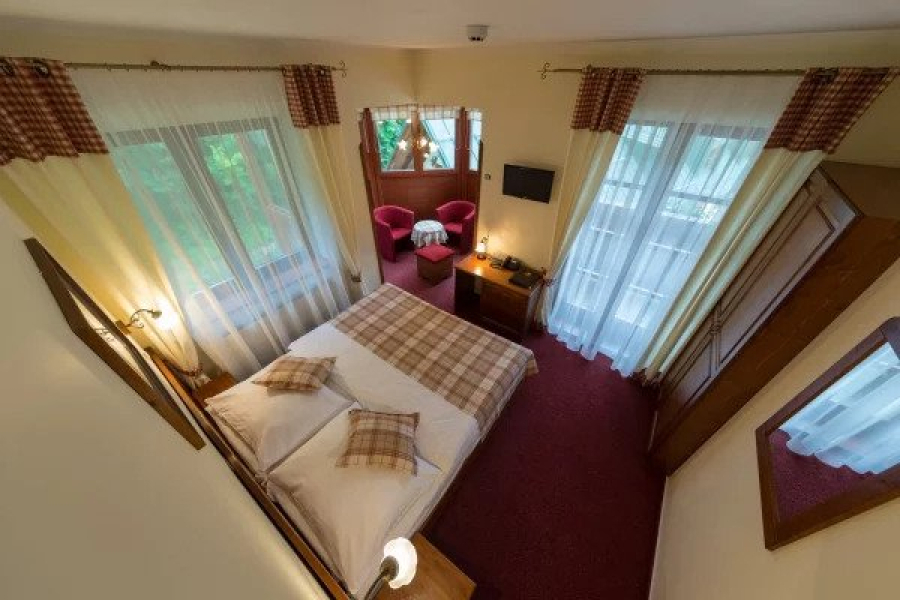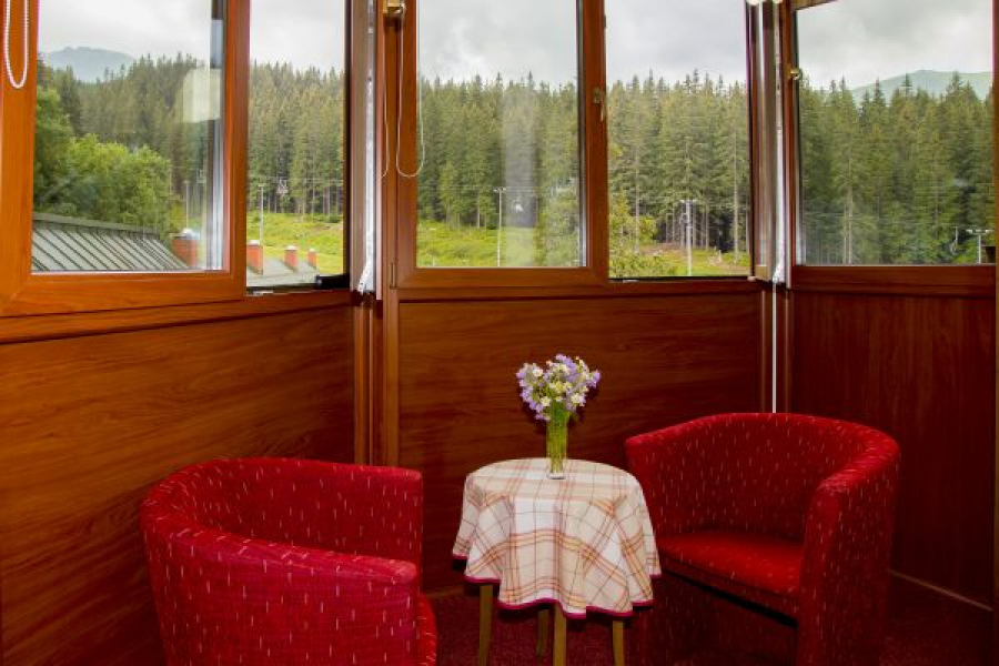 Dvojlôžkové vežičkové izby s preskleným výklenkom sú najromantickejšie izby v hoteli.